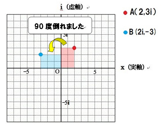 同じように虚数iをかけていくと90度づつ回転していき、4回かけると元に戻ります。