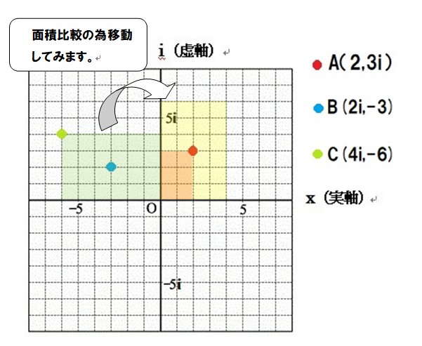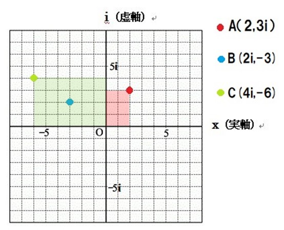 お約束として虚軸方向へは虚数のiが常についてまわります。