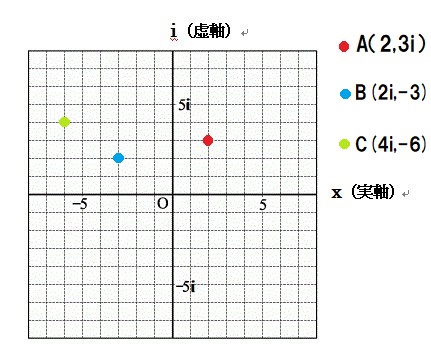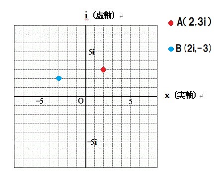 ではここに例としてA(2,3i)というのをプロットしてみましょう